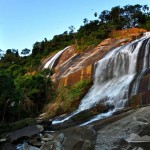 Após formar os tranquilos poços da Trilha da Água Branca, o Córrego da Água Branca percorre cerca de 820 metros e despenca criando uma das mais bonitas cachoeiras da Ilha. Formada por duas grandes quedas paralelas ótimas para Cachoeirismo, com cerca de 55 e 62 metros, a cachoeira da Água Branca é a principal atração do Parque Municipal das Cachoeiras. A majestosa cachoeira pode ser vista desde a balsa e após dias chuvosos, quando seu volume aumenta, desde o continente. Também chamada de cachoeira da Usina, a partir de 1958 a cachoeira moveu a turbina de uma pequena hidrelétrica da CESP, desativada totalmente por volta de 1993. Com águas fortes e piso escorregadio, esta cachoeira é fechada para banho, mas o Parque oferece uma tranquila trilha que passa por bons poços para banho e permite a visita ao Viveiro Municipal Aroeira e ao museu da antiga usina. A cachoeira está a 3,2 km da balsa, no bairro Água Branca.