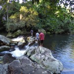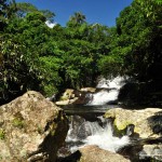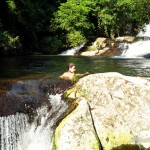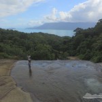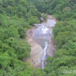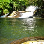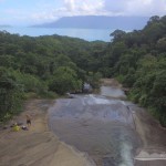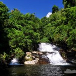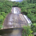Com alguns dos melhores poços de Ilhabela para nadar, neste verão recebeu muitos visitantes, mas seu potencial ainda é pouco explorado pelo município. Também chamada de cachoeira do Bexiga, na verdade trata-se de duas quedas isoladas, visitadas basicamente na Alta Temporada por moradores e turistas hospedados nas proximidades. A primeira queda, acessada após apenas 680 metros de trilha, é dividida em dois degraus que descem por entre a mata. Já a queda maior exige um pouco mais de esforço para ser alcançada, mas apresenta um belo visual do Canal de São Sebastião. Suas convidativas piscinas de águas verde-amareladas são formadas pelo Ribeirão São Sebastião (ou do Pombo), um dos mais caudalosos do arquipélago. Suas nascentes brotam nos altos do Pico de São Sebastião, a mais de mil metros de altitude, e formam um dos maiores mananciais de água de Ilhabela, o que não impede a visitação já que toda água captada é tratada pela Sabesp antes de ser distribuída para consumo, com exceção de algumas captações clandestinas. Melhor ir com um guia, pois apesar da sua trilha ser fácil é confusa para quem vai pela primeira vez. A cachoeira está a 8,1 km da balsa, entre as praias Grande e do Curral.